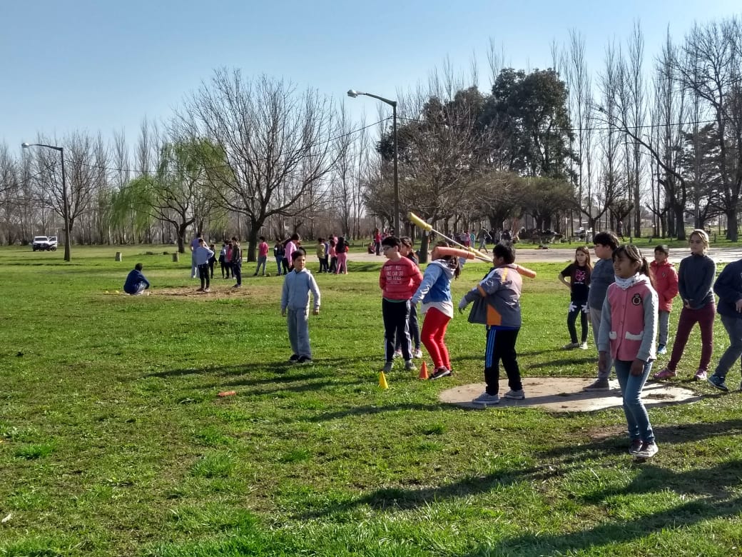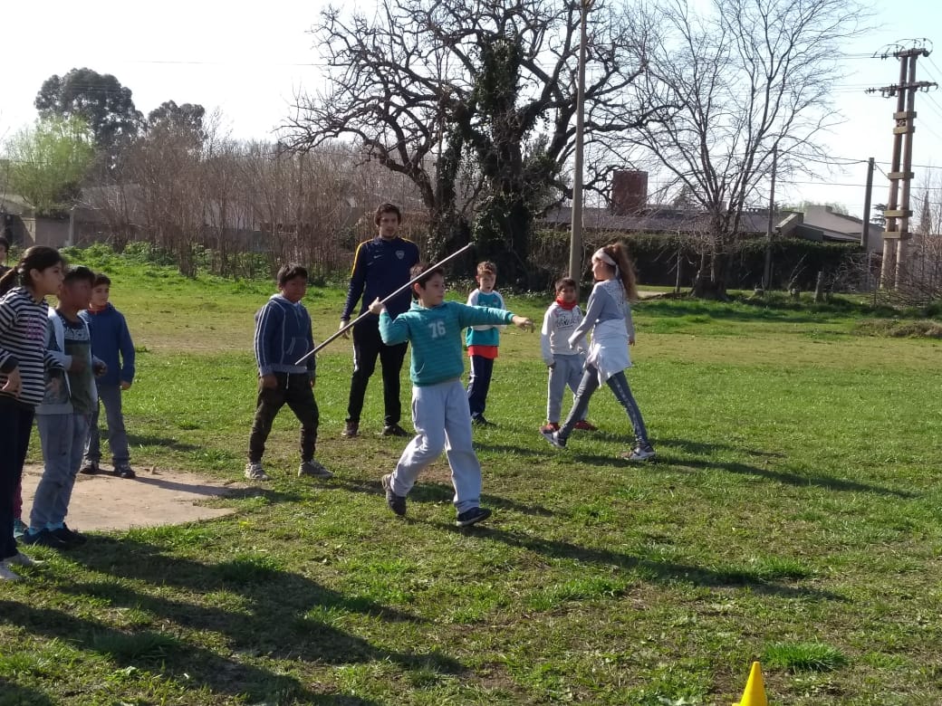 En la Agrupación atlética se desarrolló una jornada de atletismo en la que participaron 80 alumnos de las escuelas 14 y 22. Hubo juegos donde los chicos corrieron, saltaron y realizaron actividades de lanzamiento.