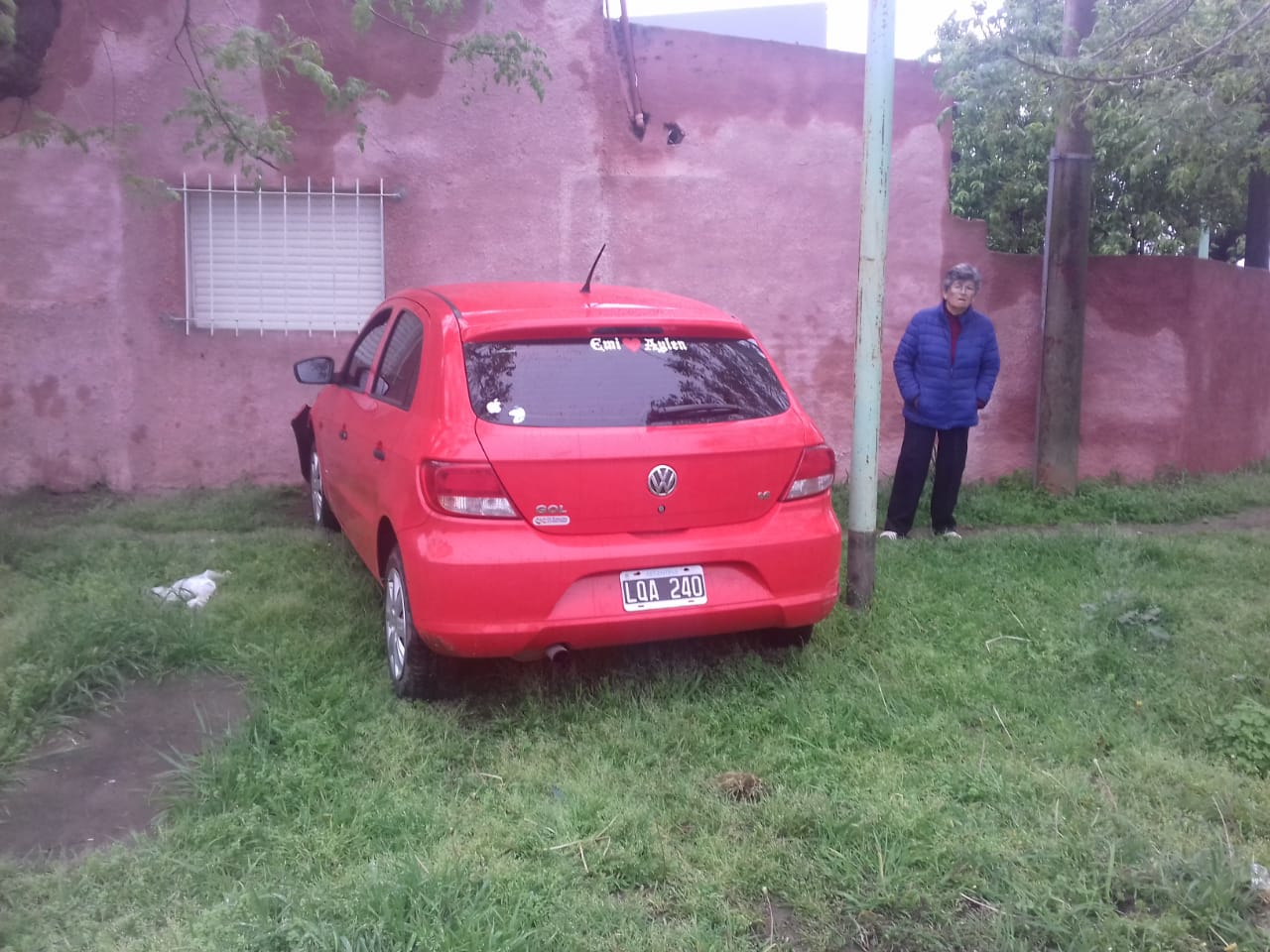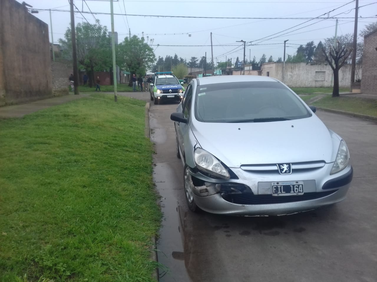 Los protagonistas del accidente fueron dos vehículos, un Volkswagen Gol color rojo y un Peugeot 307 color gris. Tras el choque, el Gol impactó contra una vivienda y quedo parado sobre la vereda.
