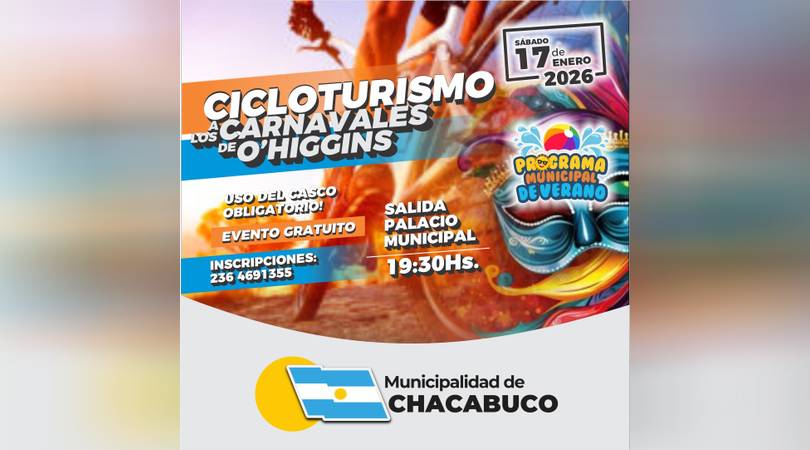 En simultáneo, se realizará un torneo de Beach Vóley, modalidad 4 contra 4 mixto. - Cicloturismo a los Carnavales de O’Higgins