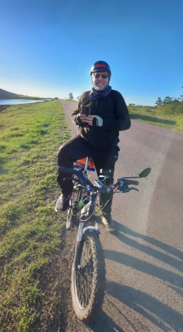 “Hace unos años tuve un problema oncológico de próstata. Hasta ese momento la bicicleta la tenía para hacer los mandados por acá. Cuando tuve ese problema de salud dije ‘no voy a poder andar más’, pero cuando hacía los tratamientos con rayos y la quimioterapia con pastillas empecé a hacer caminatas. Lo que pasó fue que me jodí una rodilla. Afortunadamente no se rompió nada. En ese momento, el urólogo y el reumatólogo me aconsejaron que anduviera en bicicleta. Y así lo hice, pero nunca me imaginé que iba a hacer las distancias que hago ahora, sobre todo a los 68 años”, señala.
