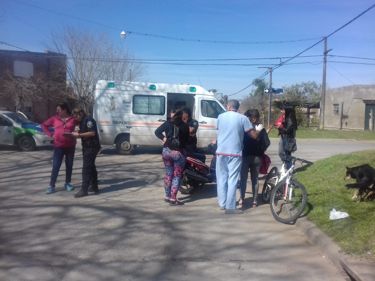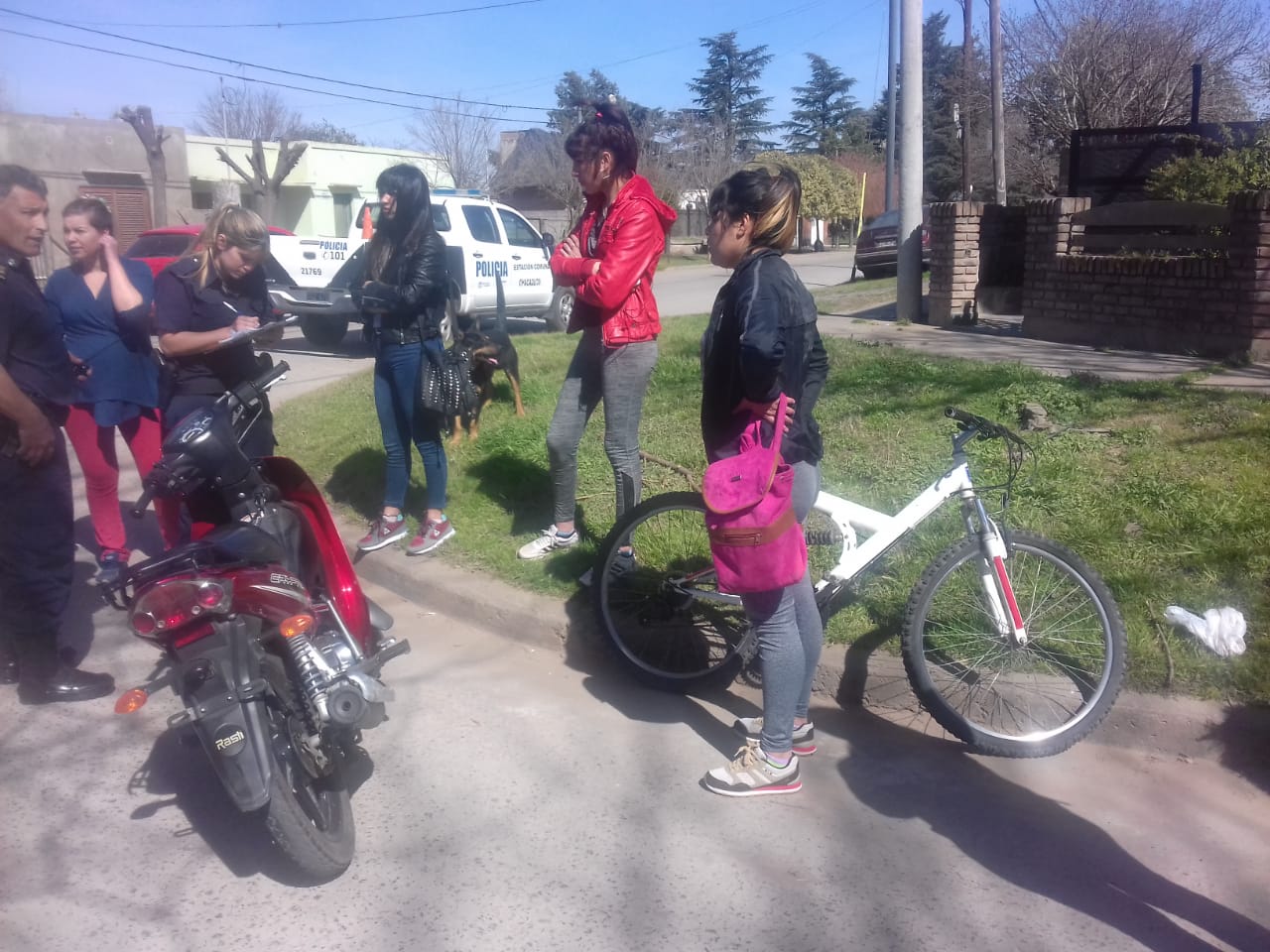 Hace minutos en la esquina de Junín y Corrientes una bicicleta y una moto fueron protagonistas de un choque.