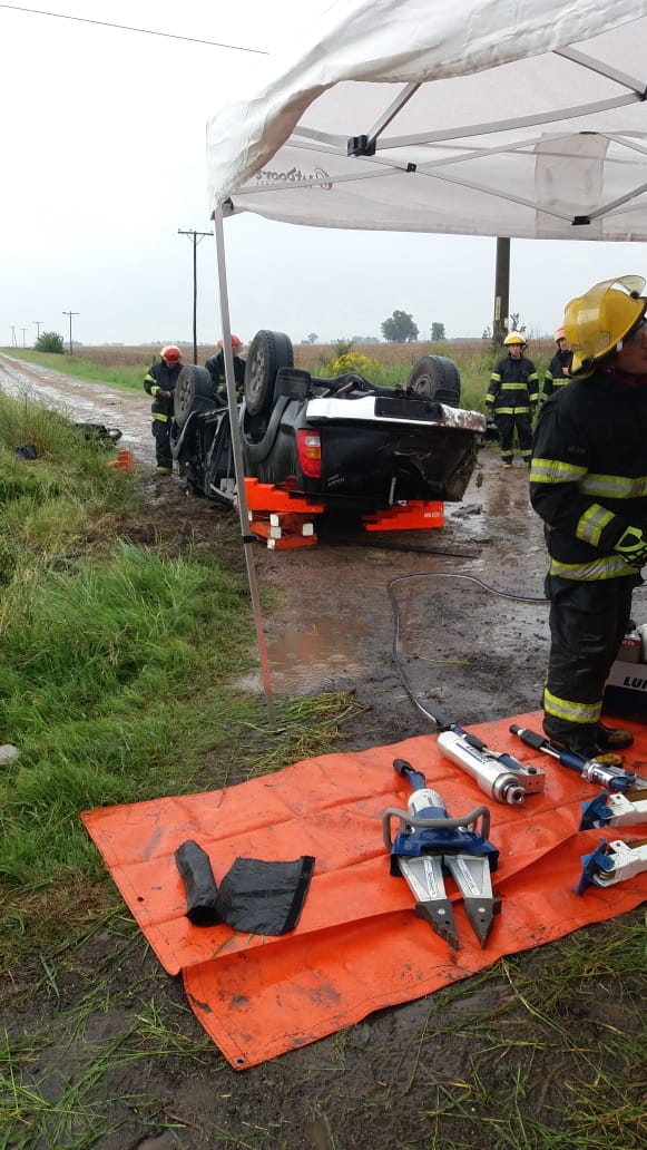 A solo 800 metros de ese lugar, un remisero de Chacabuco perdió el control de su Renault Kangoo y terminó volcando en la