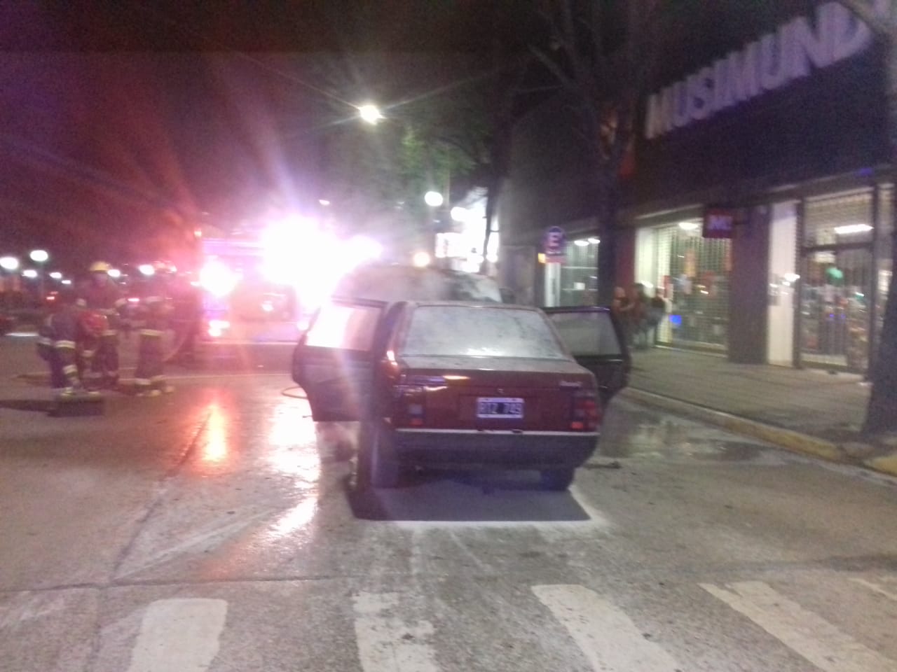 Hace instantes, un vehículo marca Fiat Duna color Rojo, se prendió fuego frente a la Plaza San Martín. Los bomberos Voluntarios trabajan en el lugar.