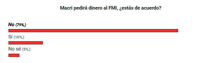 El día martes 8 de mayo preguntamos a nuestros lectores “Macri pedirá dinero al FMI, ¿estás de acuerdo?”.