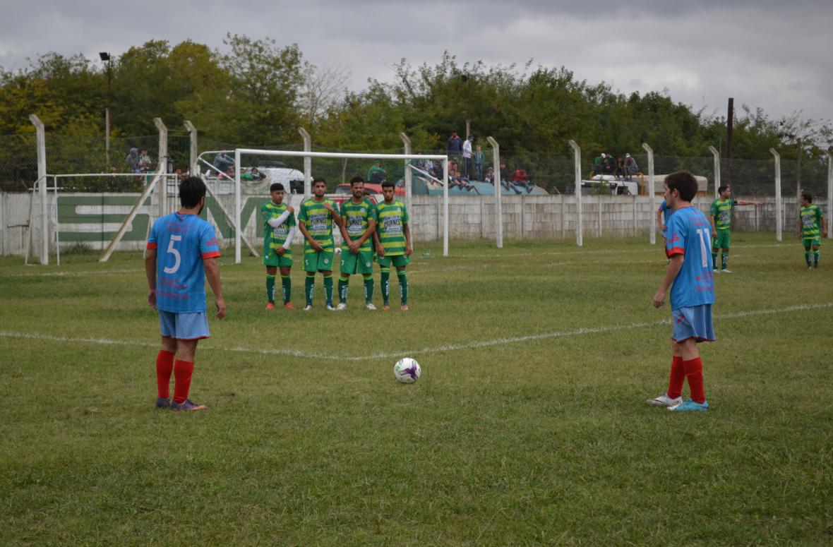 El verde comenzó arriba en el marcador a través de la vía del penal a los 20 minutos de la primera parte, cuando Esteban Caseri se encargó de ejecutar la pena máxima luego de una falta dentro del área de Sergio Batista sobre Ramiro Morra. El 10 de San Martín definió a la izquierda del arquero con gran precisión.