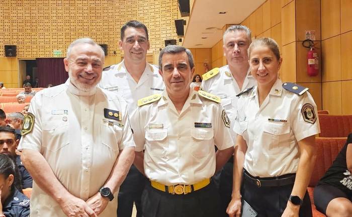 En la imagen, Moretto, a la izquierda, en un acto policial realizado el 19 de diciembre pasado en el Teatro Italiano.