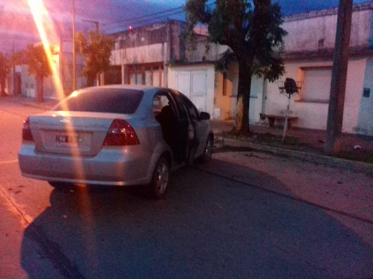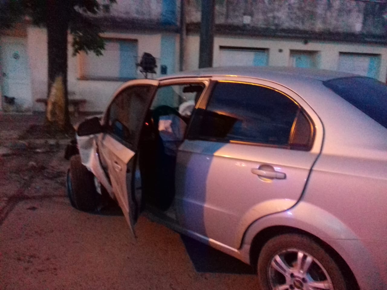 Pasadas las 6 horas, un automóvil Chevrolet chocó contra un árbol a mitad de cuadra en Falucho entre Moreno y Zapiola.