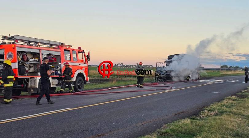 Esta tarde la sirena de bomberos alertó por un incendio de un camión Mercedes Benz en la Ruta 30 camino a Chivilcoy.