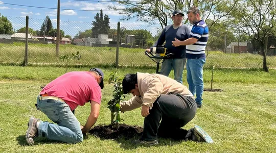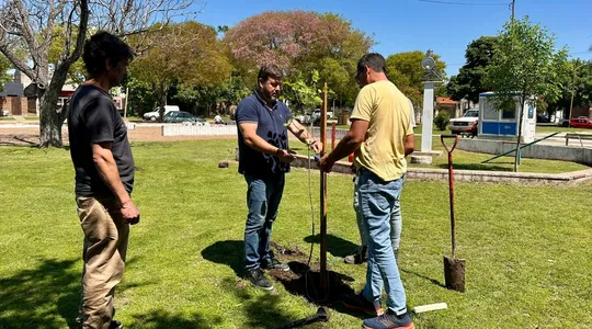 Plantan árboles en Plaza Lavalle
