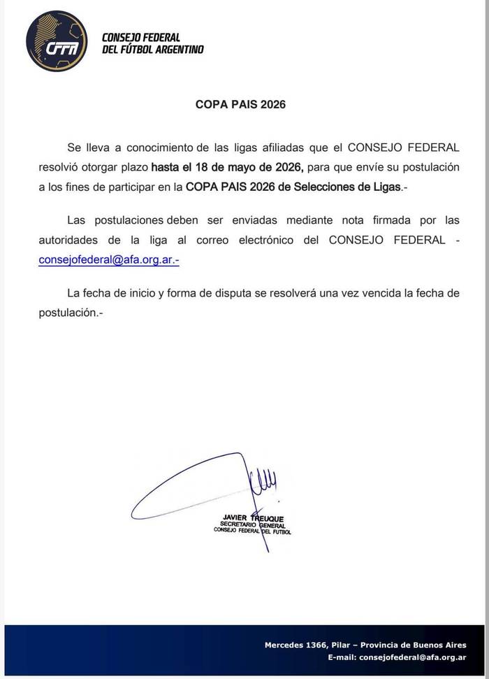 Tras algunos meses de incertidumbre, finalmente se acaba de confirmar el certamen 2026 de la Copa País en la que estará presente la selección de Chacabuco, hecho que hizo oficial la Liga Deportiva de Chacabuco.