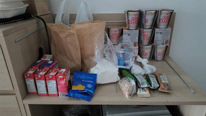 Por precaución, desde el hotel les suministraron comidas y bebidas para consumir dentro de la habitación durante el tiempo que dure la tormenta.