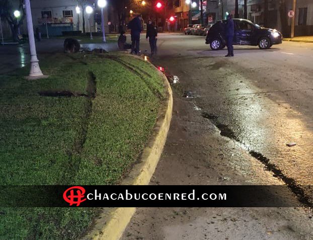 Anoche, a la 1:30 de la mañana un Peugeot 207 conducido por Federico Golía de 18 años, se subió a la vereda de la Plaza San Martín y chocó contra un poste de luz, arrancándolo de su base.