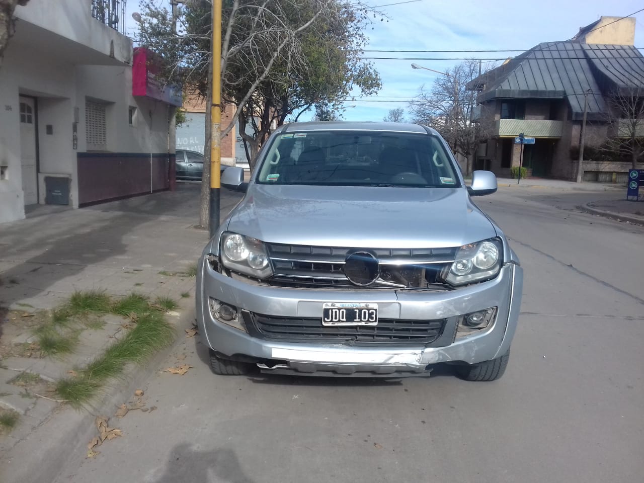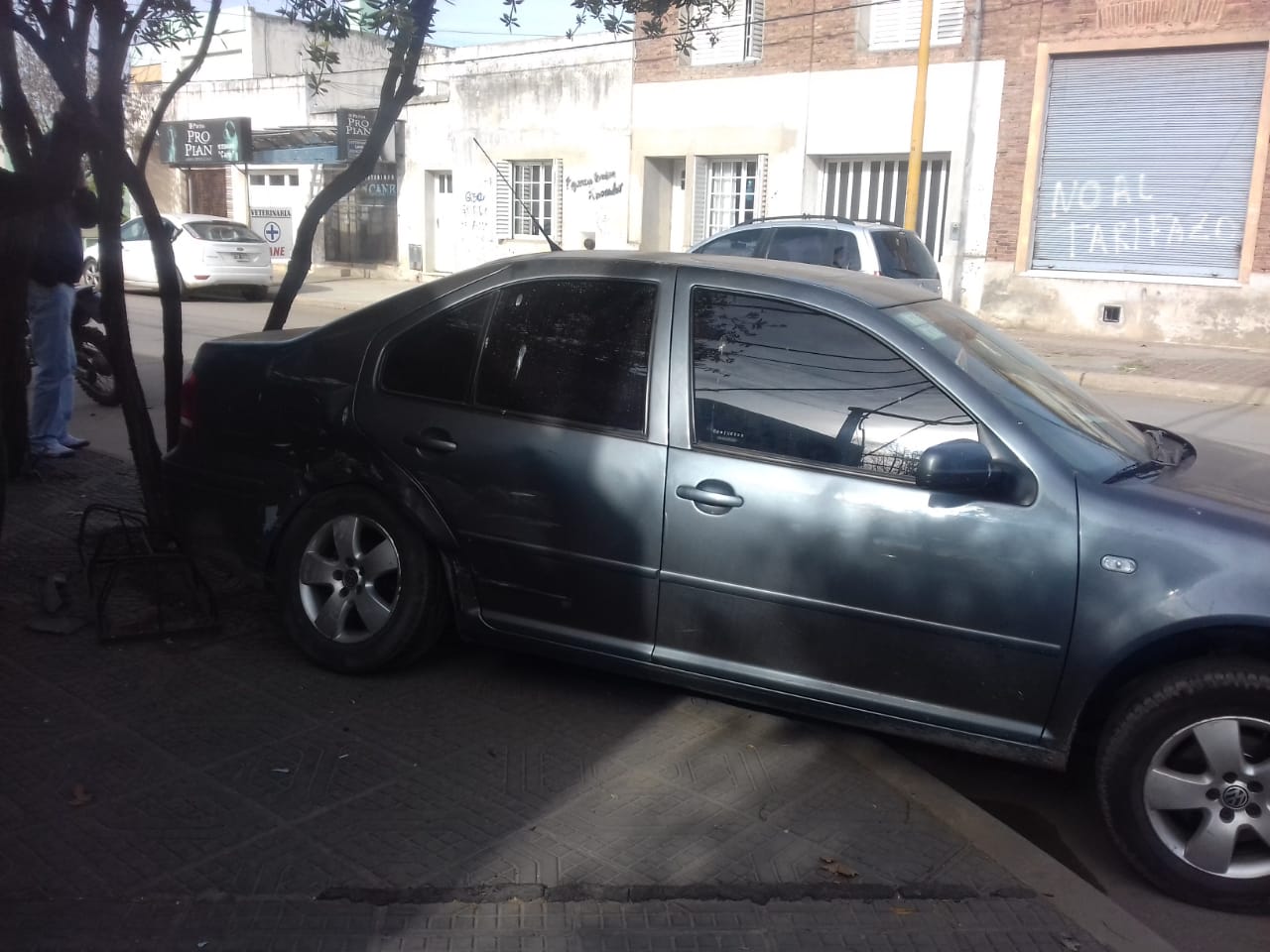 Se trata de una camioneta y un Volkswagen Bora que terminó sobre la vereda. La conductora de uno de los vehículos sufrió un golpe en la frente que no requirió su traslado al Hospital Municipal.