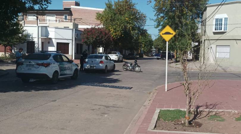 Esta mañana, en la esquina de Mitre y San Luis se produjo un choque entre una Volkswagen Voyage y una Mondial 110 en la que circulaban una persona mayor y dos menores.