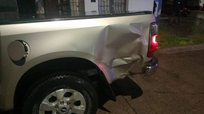 Un joven a bordo de una motocicleta 110cc Gilera Smash impactó contra la parte trasera izquierda de una camioneta Chevrolet S10 conducida por una vecina. Cómo resultado de la colisión, el motociclista resultó herido y debió ser trasladado al Hospital Municipal por una ambulancia del SAME.