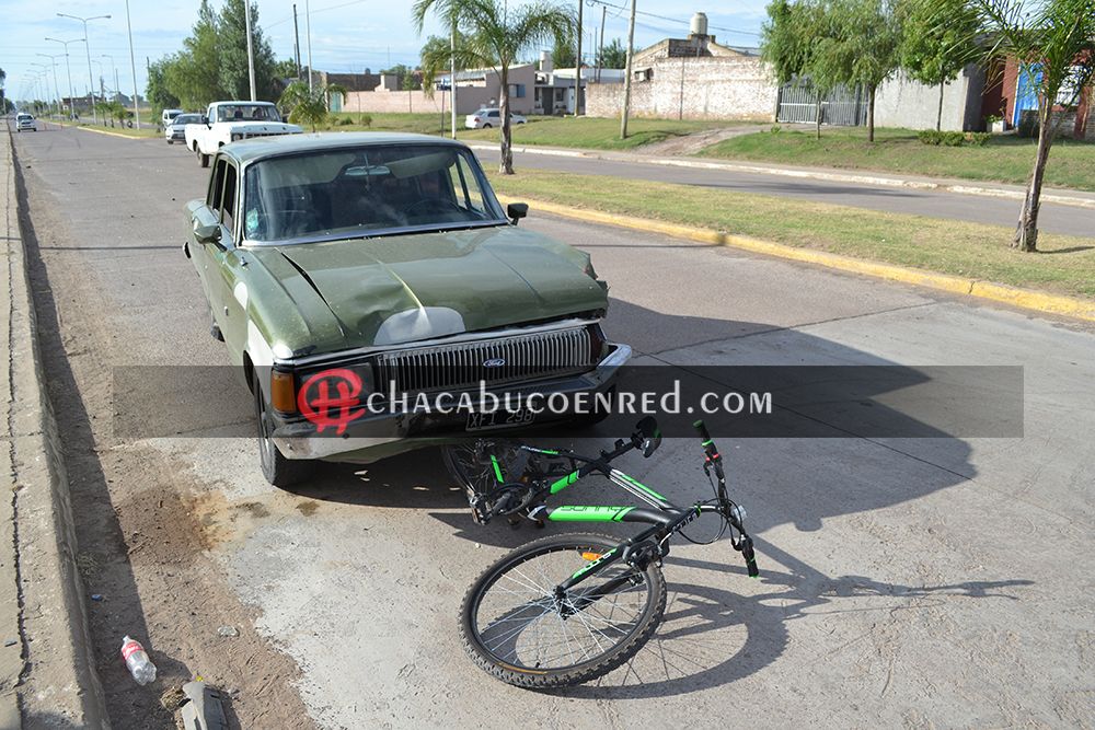 Hace instantes se produjo un accidente en el Acc. Juan XXIII involucrando a dos vehículos y una bicicleta. Quien se llevó la peor parte fue una joven mujer de unos 35 años que circulaba en la bicicleta.