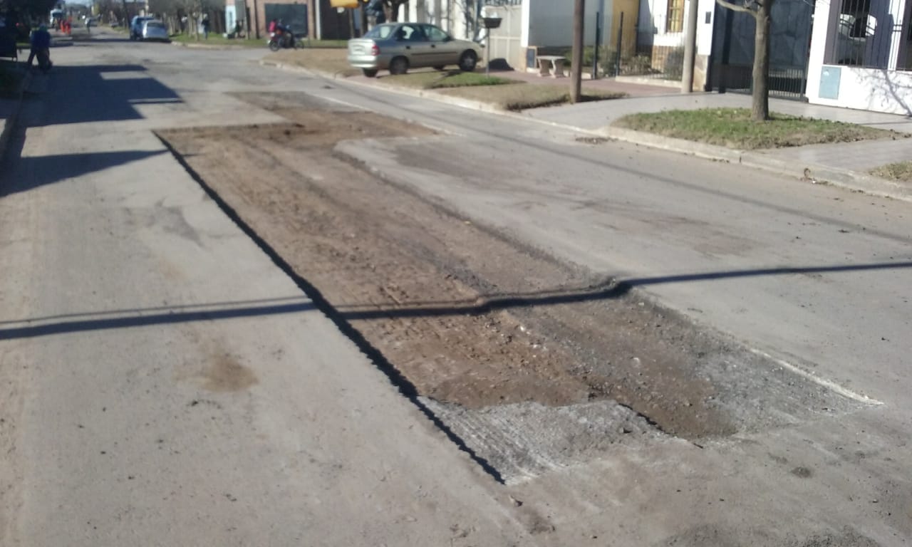explicaciones sobre el asfalto de calle Balcarce que se rompió a poco de haberse realizado.