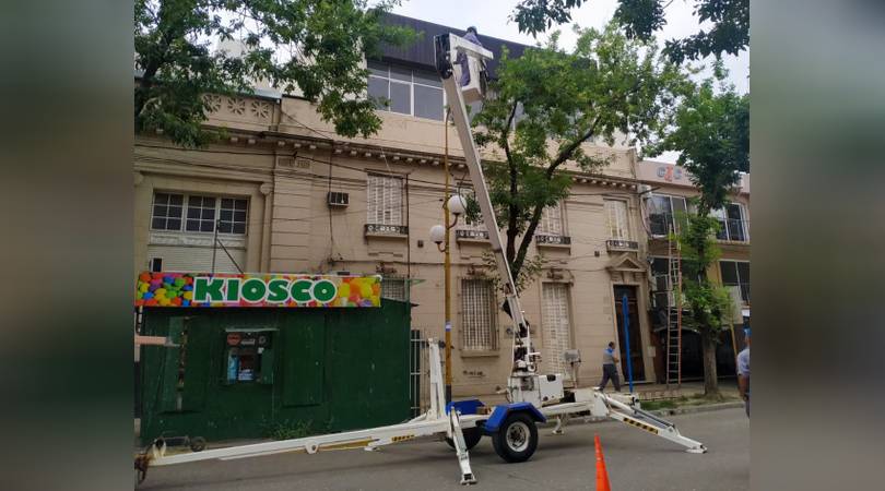 El intendente municipal, Dr. Víctor Aiola acompañado por el secretario de Gobierno, Mario Ferraresi, se acercó esta mañana al lugar de trabajo donde se realiza el recambio de luminarias y fue recibido por el secretario de Obras Públicas, Eduardo Juliá.