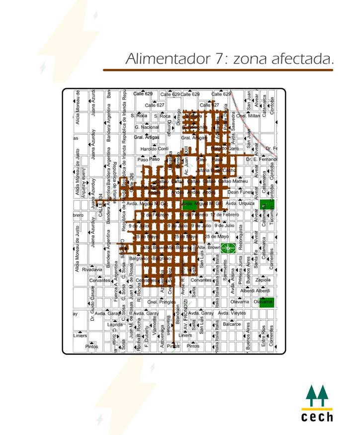 A raíz de este problema, también debieron cortar en forma provisoria el Alimentador 7 por lo que una buena parte de la zona céntrica e inmediaciones de la Plaza Belgrano, se están viendo afectadas. Se estima que en aproximadamente 30 o 40 minutos, vuelva a restablecerse el servicio.