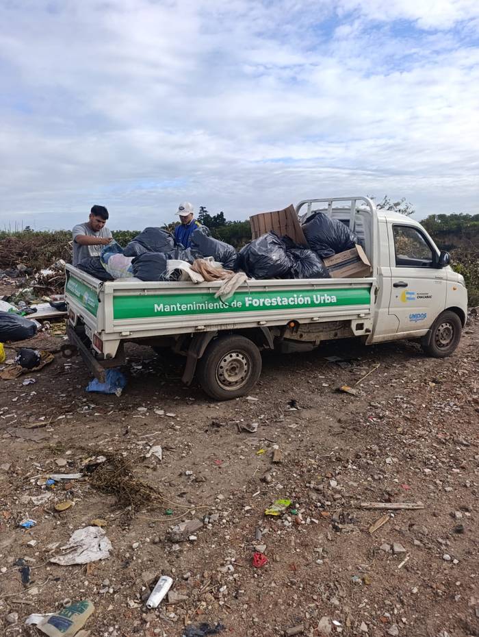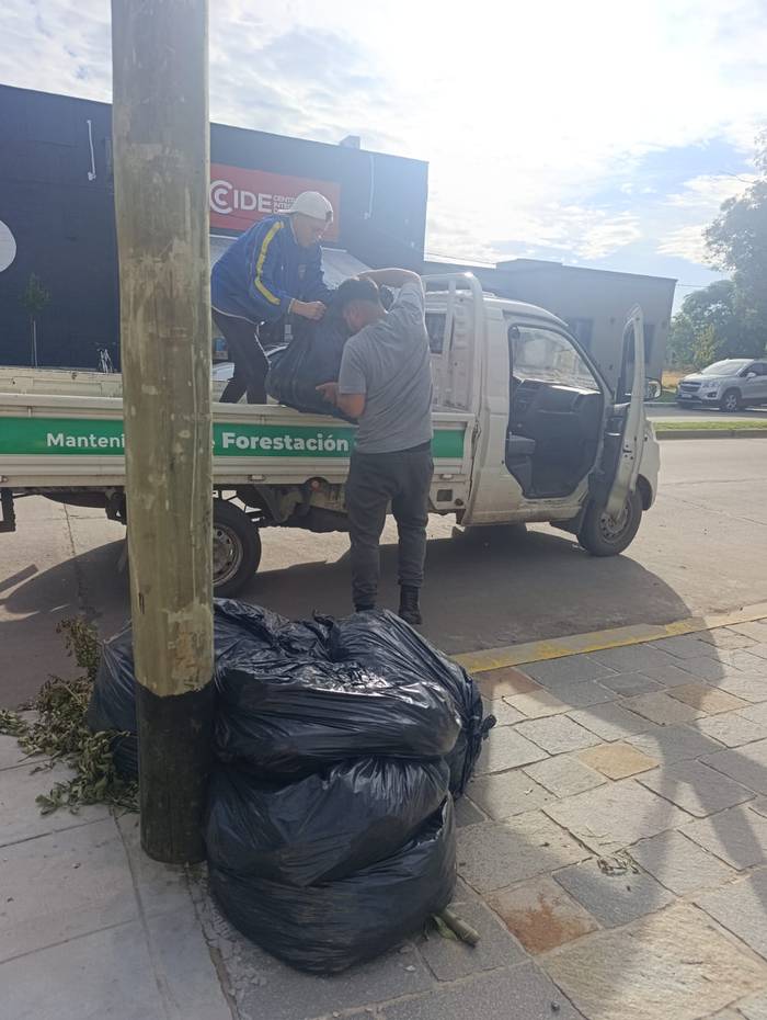 En cada jornada, el grupo se encarga de juntar hojas, ramas y otros residuos verdes que se acumulan tras las tareas de limpieza domiciliaria, contribuyendo así a mejorar el orden y la higiene urbana.