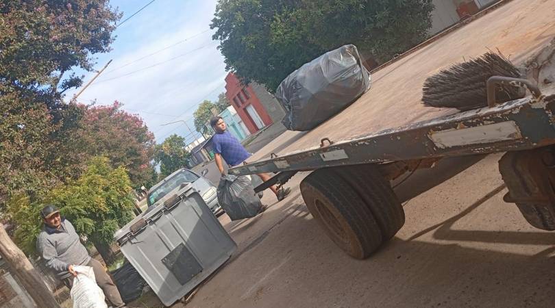 En cada jornada, el grupo se encarga de juntar hojas, ramas y otros residuos verdes que se acumulan tras las tareas de limpieza domiciliaria, contribuyendo así a mejorar el orden y la higiene urbana.
