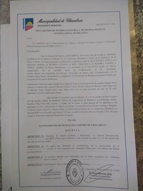 El Festival organizado por La Rumbita Estudio de Danzas que se realizó en nuestra ciudad los días 13 y 14 de octubre en el Salón Perfíl recibió, gracias a la gestión de la Subsecretaria de Cultura María Celina Felice y quien estuvo presente, el Decreto N°1185 que declara de Interés Cultural y Municipal a RUMBA FEST. El evento contó con la presencia de grandes maestros como Jaime Breard, Coreógrafo y Director del Estudio Saoco quien llevó adelante la conducción y entrega de diplomas a los 16 egresados del Profesorado de Bachata Saoco Sede Chacabuco, Cintia Mignone, Bailarina y Coreógrafa con más de 20 años de trayectoria en la danza AfroCubana y Jurado de competencias a nivel nacional e internacional, Yasser Peralta García de Cuba referente en nuestro país de la Danza AfroCubana y productor además de grandes eventos de carácter internacional. Figuras destacadas de la Salsa y la Bachata de nuestro país, con la destacada presencia de los actuales Campeones Mundiales de Bachata PRO Braulio Carazo y Valentina Salari de Uruguay. Durante las dos Jornadas se realizaron talleres de capacitación de Cha Cha Cha, Rumba Cubana, Bachata, Timba y Salsa, por la noche se realizaron 10 Shows y se realizó la Fiesta Social donde se recibió a gente de Junín, Chivilcoy, Colón, Córdoba, Capital Federal, Bragado, Mercedes, Pergamino, Rosario, Rojas, Salto, La Plata.