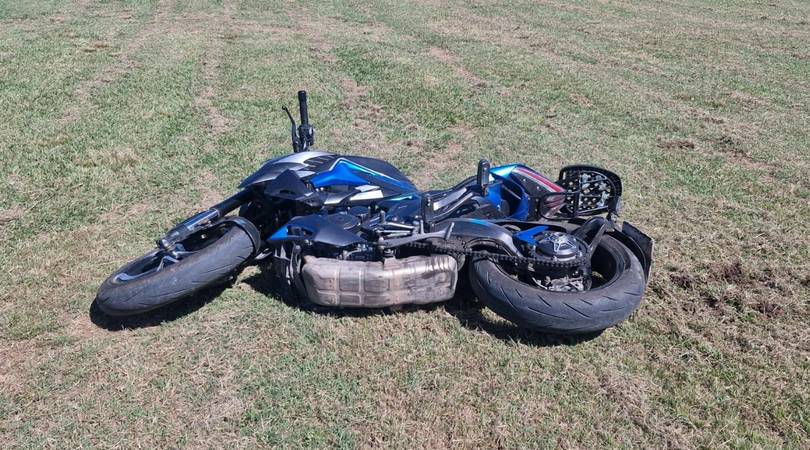 En el día de ayer se produjo un violento accidente cuando en circunstancias que se tratan de establecer un vecino perdió el control de su moto y cayó en Acceso Hipólito Yrigoyen y rotonda de Ruta 7.