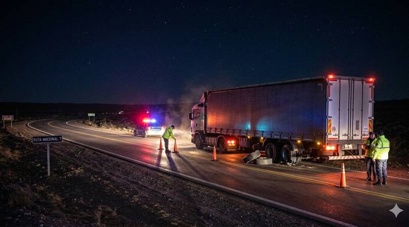 Ayer a la medianoche, un camión sufrió un desperfecto mecánico y quedó detenido sobre la Ruta Nacional N° 7, a la altura de la conocida curva del Coliqueo, generando un posible peligro en la circulación de otros rodados.