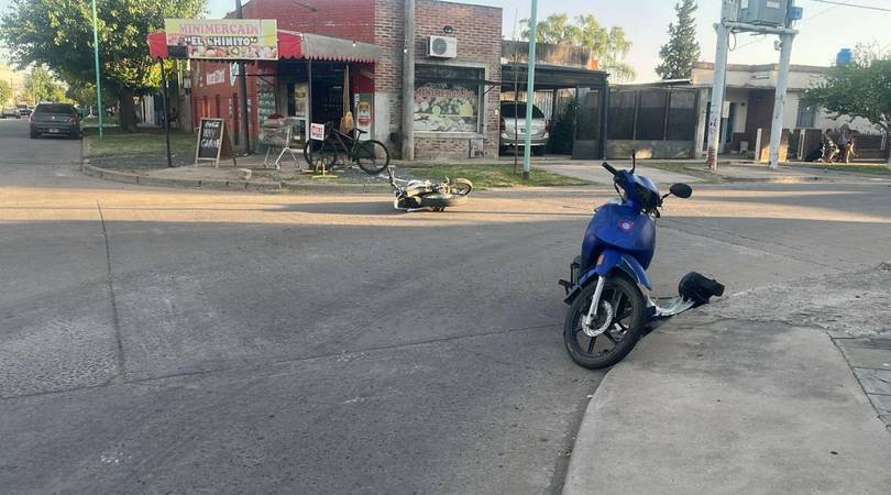 Esta tarde en la intersección de calles Rivadavia y Azcuénaga se produjo un accidente de tránsito que involucró a dos motos.