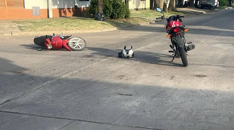 Esta tarde en la esquina de Sarmiento y Pintos se produjo un nuevo accidente de tránsito entre dos motocicletas. Una de ellas era una 110cc y la otra una moto de mayor cilindrada marca Honda.