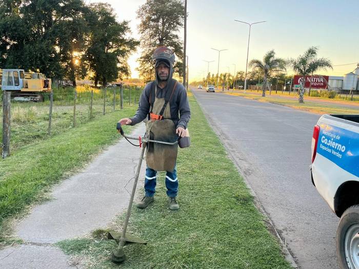 Las tareas también se extienden a los accesos a la ciudad, donde se realizan trabajos en canteros y banquinas, además de la limpieza y corte de pasto en sectores que los vecinos eligen como espacios recreativos, especialmente los fines de semana, sobre la Ruta Nacional N° 7 y en la localidad de Cucha Cucha.