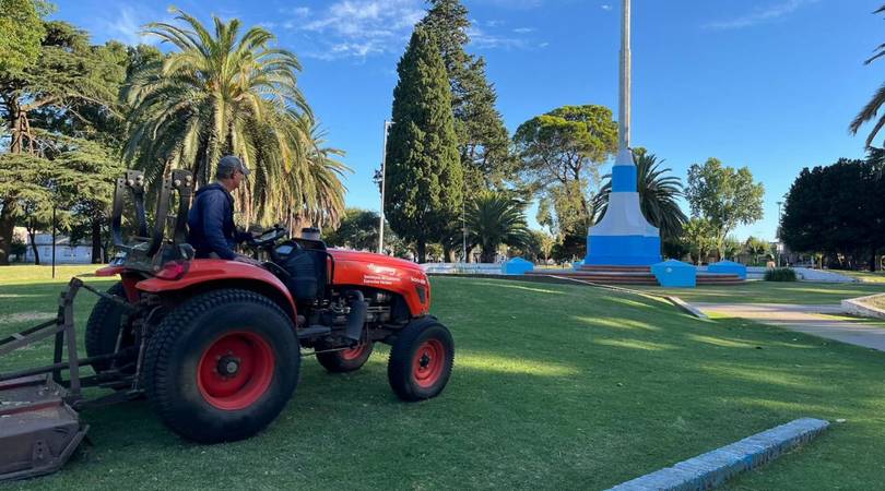 Las tareas también se extienden a los accesos a la ciudad, donde se realizan trabajos en canteros y banquinas, además de la limpieza y corte de pasto en sectores que los vecinos eligen como espacios recreativos, especialmente los fines de semana, sobre la Ruta Nacional N° 7 y en la localidad de Cucha Cucha.