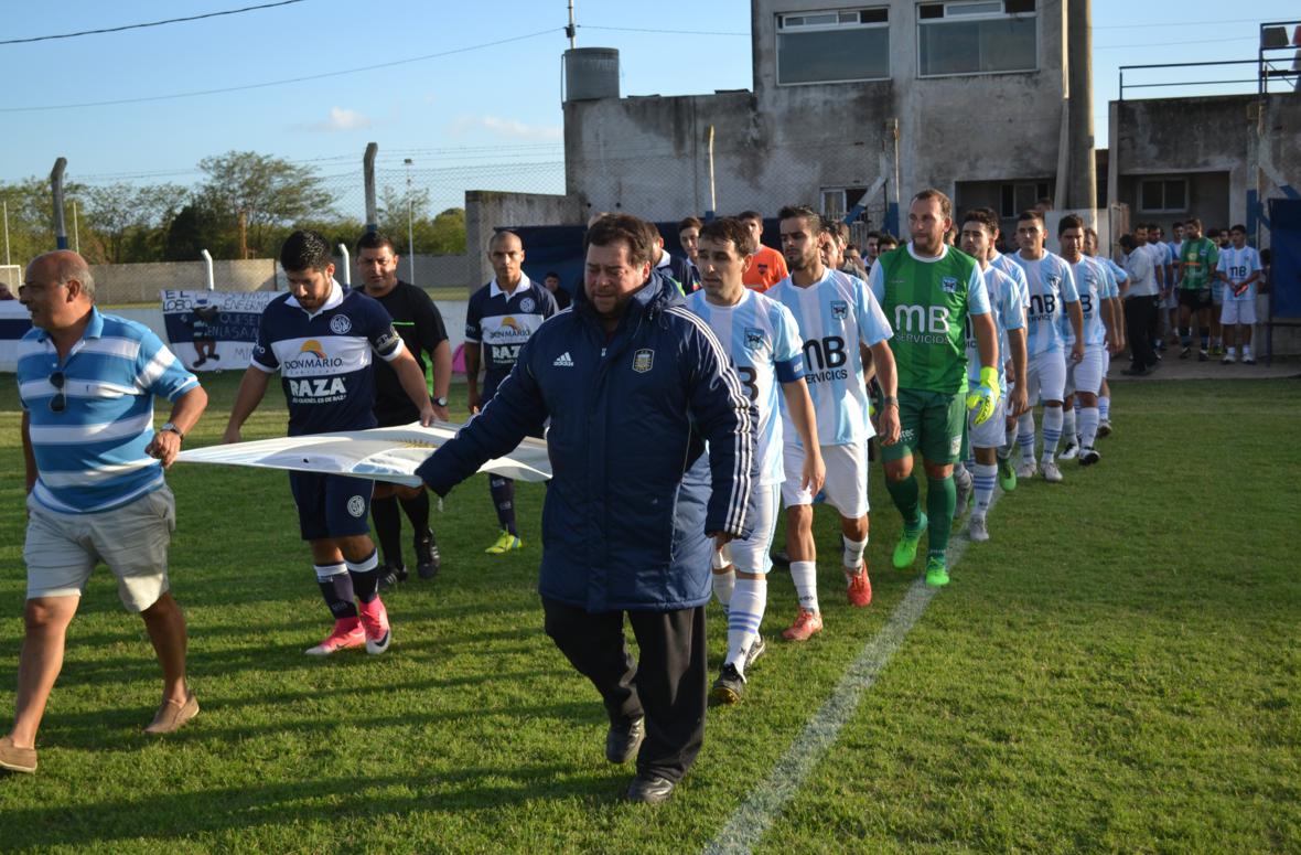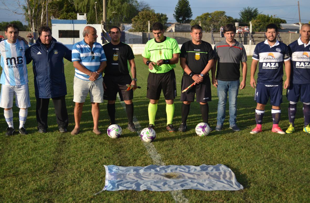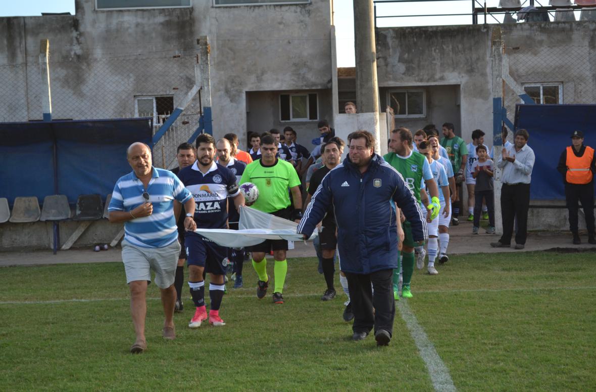 Previo al inicio del encuentro, se rindió homenaje a los “héroes” de Malvinas, con la presencia de Julio Báez (ex combatiente) y los representantes de la Liga Deportiva de Chacabuco.