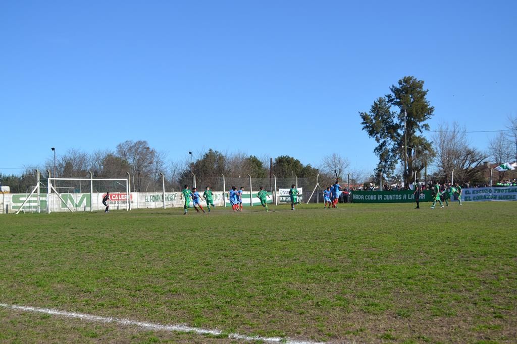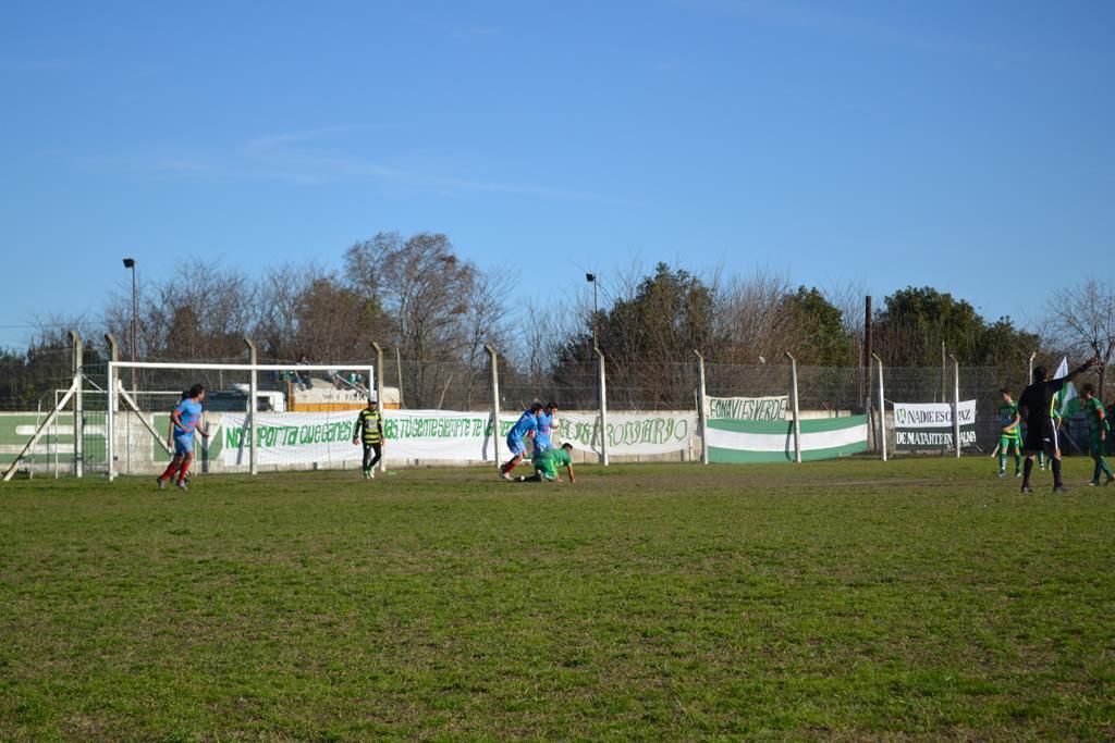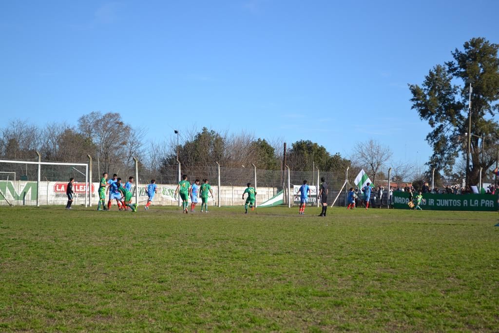 El partido fue tomando cada vez más intensidad con el correr de los minutos, el juego se cortó mucho por las reiteradas infracciones, hasta que a los 23 minutos, un corner desde la derecha para el local en los pies de Esteban Caseri, iba a paralizar a todo el estadio. El centro se fue abriendo por el segundo palo, donde estaba el capitán Javier Farías, el defensor conectó en el aire la pelota en una especie de tijera y la clavó en el primer palo, para desatar la euforia de todo el publico local.