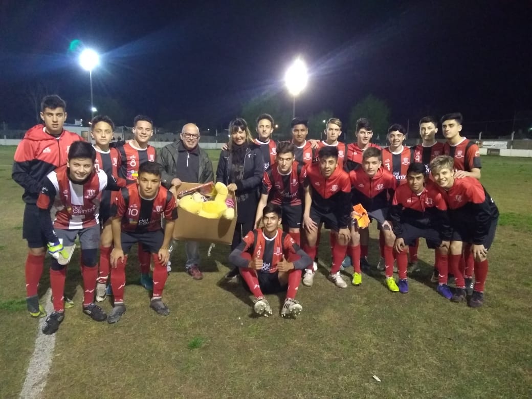 En la previa del encuentro, los chicos de la Sub 15 entregaron regalos que juntaron para el día del niño para el merendero que lleva adelante Nancy Nicolini en el barrio Las Palmeras.