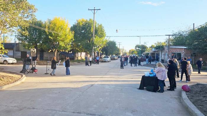 La cuadra de pavimento de Doctor Fernández que se inauguró es la situada entre Córdoba y Catamarca. Allí se realizó el acto, con corte de cintas incluido, que comenzó con una bendición realizada por el padre Darío Kling.
