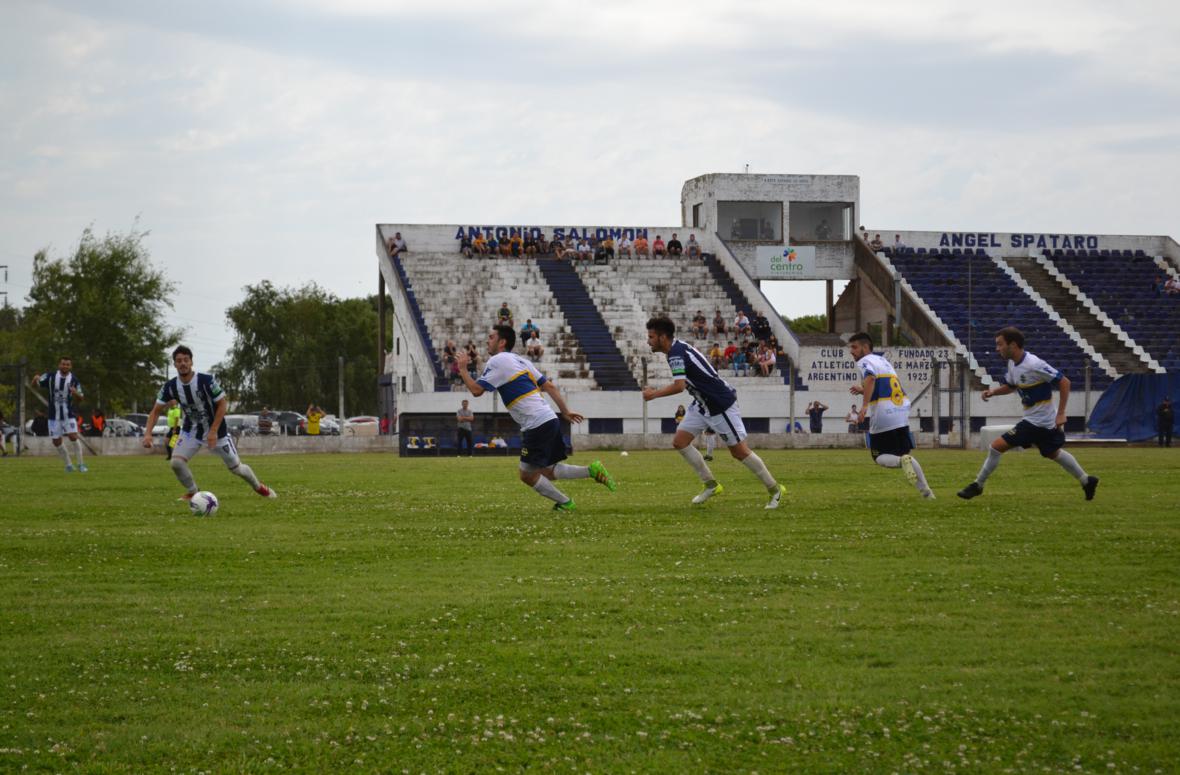 Sobre los minutos finales del primer tiempo, el arbitro marca un dudoso penal de Cerella sobre Perujo. El 9 de Viamonte tomó la pelota inmediatamente y se hizo cargo de la ejecución, la cual transformó en gol, para el 2 a 1 con el que los azules se irían en ventaja al termino de los primeros 45 minutos.