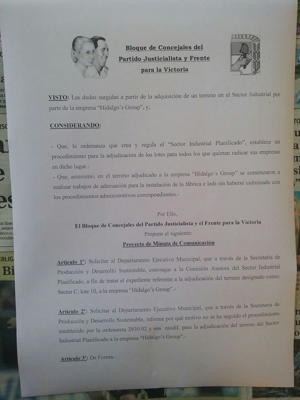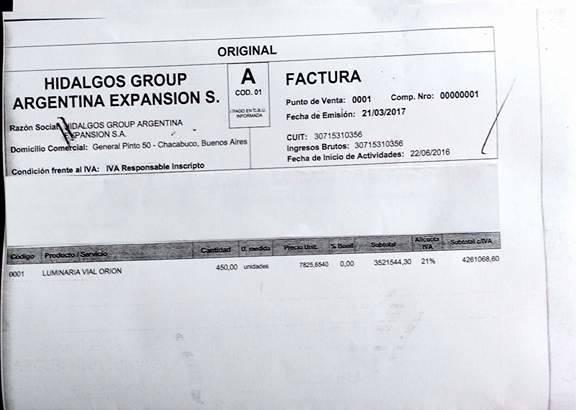 En el comienzo de la exposición, Bruno mostró la factura correspondiente a la compra de lamparas LED de la marca ORION, fabricada por la empresa Hidalgo´s, la cual asciende a un total de $4.261.068 por 450 luminarias LED de 60 watss. Acto seguido publicó un presupuesto de una cooperativa nacional de nombre VATIOVA, con características superiores a la adquirida y la suma presupuestada era de $1.667.367. Esto marca una diferencia de $2.593.701. A partir de esto Bruno resaltó que esta maniobra marca uno de los hechos de corrupción mas graves en la historia de nuestra ciudad. “Estamos siendo testigos desde hace 2 años de varios hechos vinculados a la obra pública de contratación directa, sin licitaciones en algunos casos, al menos de dudosa buena fe o de inoperancia manifiesta con muchas idas y venidas, y cuando se acumulan tantos cuestionamientos en 2 años de gestión, que no han encontrado respuestas, que no han sido aclaradas como se debiera, vinculados varios, a cifras millonarias, algunos denunciados por vecinos, otros por distintos bloques del concejo deliberante, se empiezan a producir ciertos indicios de una forma de administrar al menos desde nuestro punto de vista, poco transparente” dijo Bruno.- Ampliando las irregularidades, Bruno señaló que en la factura de la empresa Hidalgo´s la dirección comercial que figura es Gral. Pinto 50 de Chacabuco, la cuál corresponde a una casa de familia y no posee ningún indicio de ser un local comercial. Luego se refirió a que el municipio cedió a la empresa un privilegiado terreno en el parque industrial sin realizar el procedimiento administrativo correspondiente y que además de esto la empresa extrajo unos 3000 m3 de tierra el cual no se sabe que destino tuvo. Bruno termino pidiendo que el Concejo Deliberante o algún fiscal de oficio tome cartas en el asunto y pida al intendente Victor Aiola las explicaciones del caso. Algunos de los documentos expuestos por Bruno.Para recibir las noticias de Chacabuco en Red gratis en tu celular hace click ACÁ.