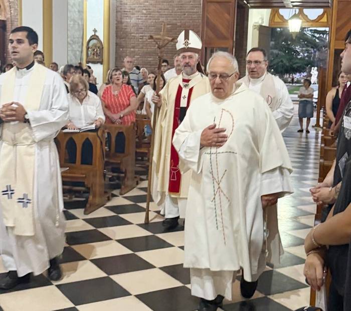 “Vine a Chacabuco porque quería celebrar acá la Cena del Señor, junto a los padres Darío (Kling) y Agustín (Báez) y el diácono Mario (Barquero)”, expresó Scheinig, en referencia a la misa que se realizó el jueves a las 19.00 en la iglesia matriz.
