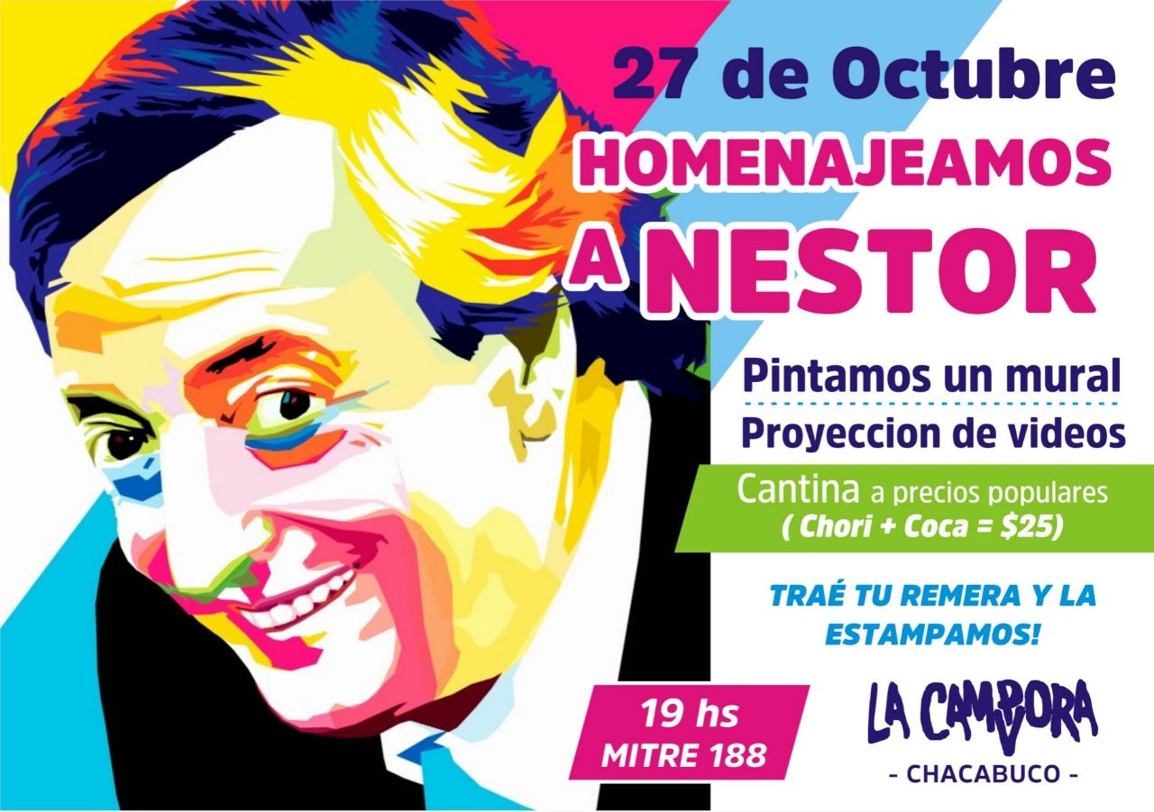 El Partido Justicialista de Chacabuco, invita a sus afiliados y simpatizantes al Acto Conmemorativo de un nuevo Aniversario del fallecimiento de Néstor Kirchner, que se llevará a cabo este Sábado 27 de octubre, a las 18 horas en la sede del partido, sito en calle Pasaje Beltrán 131 de nuestra ciudad (B).