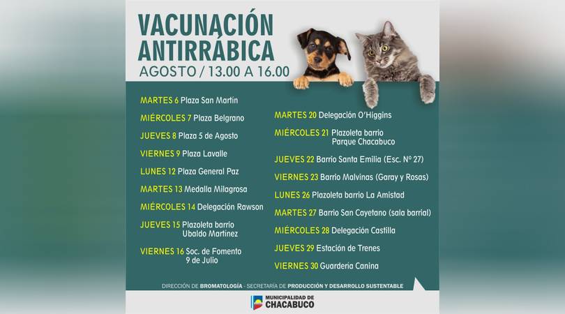 La vacunación antirrábica es para caninos y felinos, obligatoria y gratuita. Los animales, para estar en condiciones de ser vacunados, tienen que tener como mínimo 4 meses.