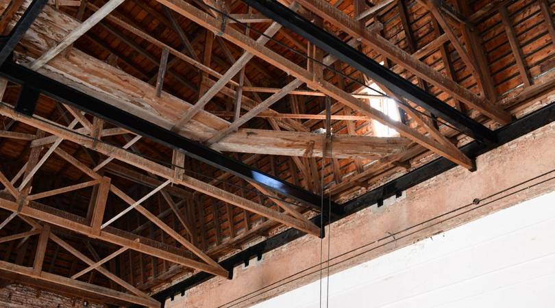 “Se ejecutaron apoyos de hormigón, con cinco intervenciones de cada lado. No es una tarea fácil, fue complejo. Luego se comenzó a trabajar en las entradas de agua. En este momento se interviene en el sector más horizontal del techo, que es de chapa lisa original, donde se colocarán membranas en toda su extensión”, continuó Rinaldi.