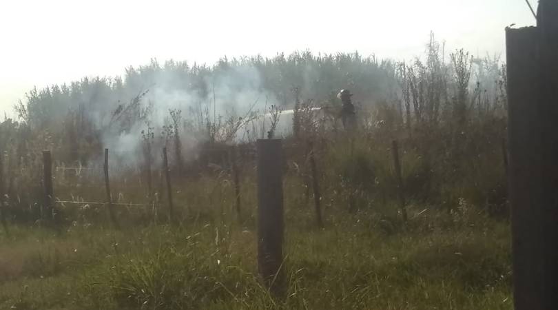 Los Bomberos Voluntarios acuden a un incendio de pastizales en el kilómetro 210 de la Ruta Nacional 7.