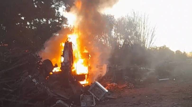 Los bomberos voluntarios volvieron a salir en la tardecita de hoy, y es que en un predio ubicado en inmediaciones del Parque Industrial, se incendió una maquina de gran porte. Se acercó al lugar una dotacion para extinguir las llamas. Cerca se encuentra una propiedad.