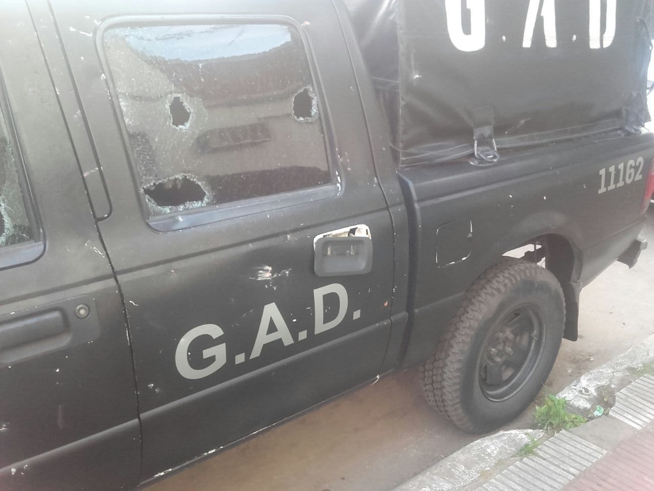 Hubo dos patrulleros de la GAD apedrados, balas de goma y piedrazos.