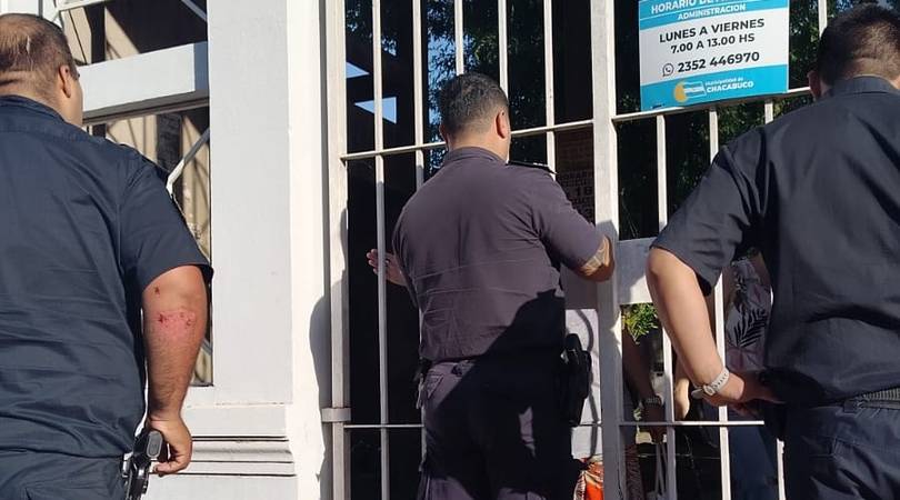 Al lugar acudieron dos móviles policiales, mientras se intentaba localizar al encargado del predio para resolver el inconveniente y permitir la salida de quienes habían quedado dentro.