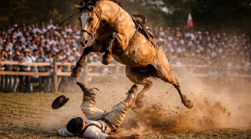 Aparentemente mientras montaba al animal sufrió una caída que le produjo un golpe en la cabeza. Se acercó una ambulancia para asistirlo.