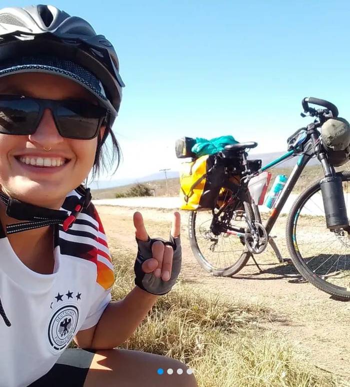 Virginia Biscotti, una ciclista que reside en Villa de las Rosas, en la región de Traslasierra Córdoba, arribará esta tarde a Chacabuco como parte de un extenso viaje en bicicleta que inició el pasado 6 de octubre.