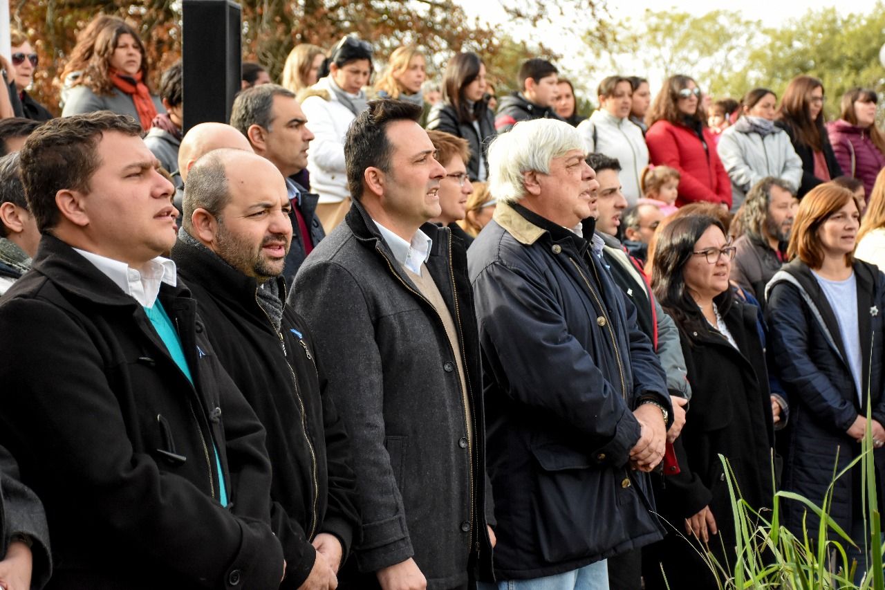 Previo al discurso del Intendente Municipal, hicieron uso de la palabra la directora de la Escuela Nº 50, Elsa Lucero; y jefe distrital de Educación, Rubén Cruz, quien fue el encargado de invitar a los alumnos a jurar lealtad a la bandera nacional.