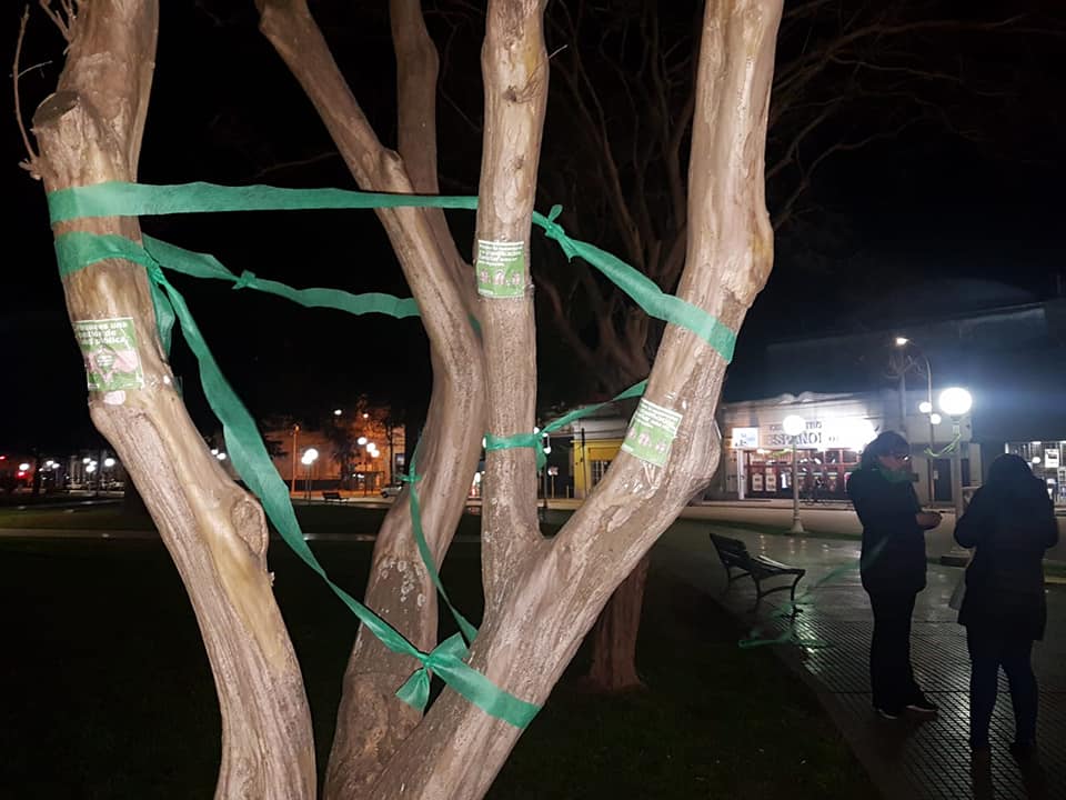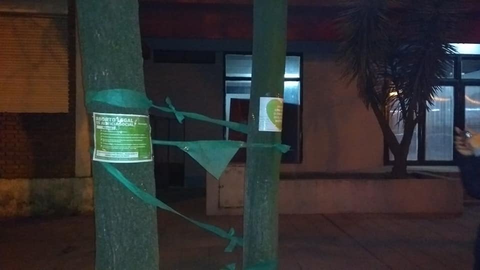 Con motivo del debate que comenzará hoy en el Senado de la Nación con respecto a la Ley de despenalización del aborto, en varios puntos de la ciudad se pudieron ver pañuelos verdes colgados en apoyo a la aprobación de la Ley.